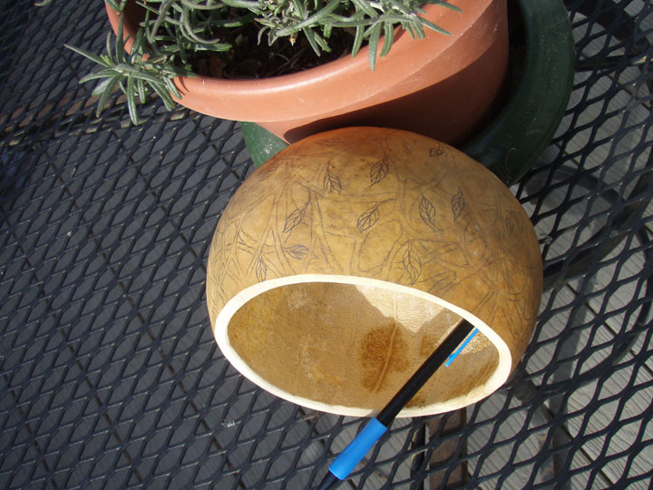Free hand drawing of a design onto a gourd bowl that I am currently playing with.